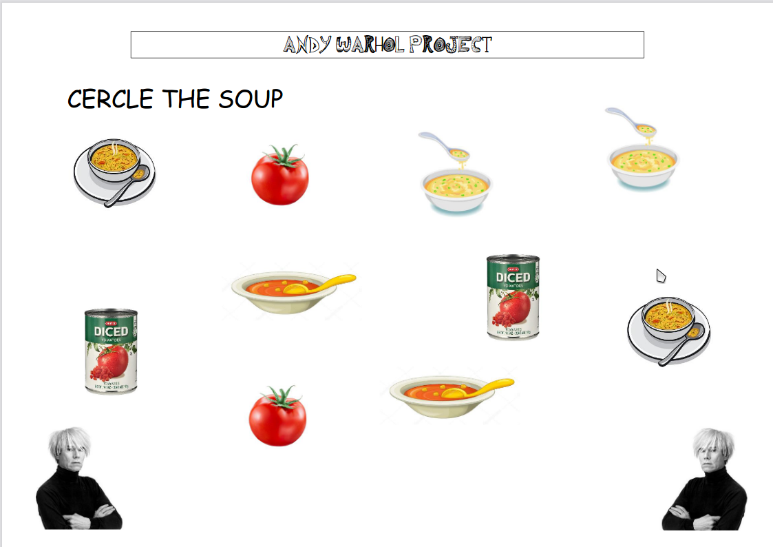 También os dejo algunas TARGETAS con las que nos apoyamos para mostar la vida y la obra de ANDY WARHOL y FICHAS que nos ayudan a entender conceptos y consolidar vocabulario.